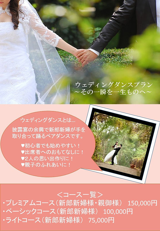 ウェディングダンスとは、披露宴の余興で踊るペアダンスのことです。